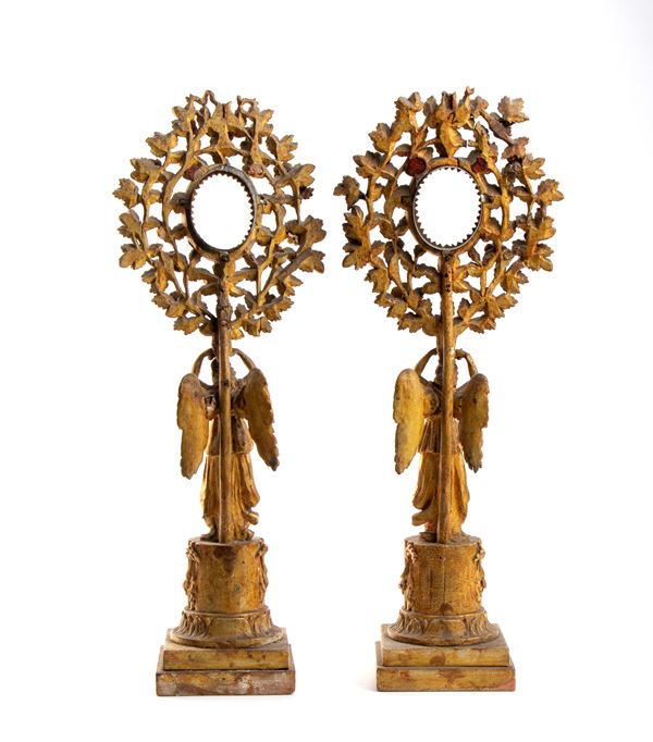 Coppia di reliquiari italiani in legno, XVIII secolo