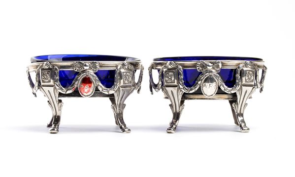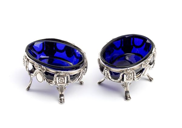 Coppia di saliere francesi in argento, Parigi, XVIII secolo