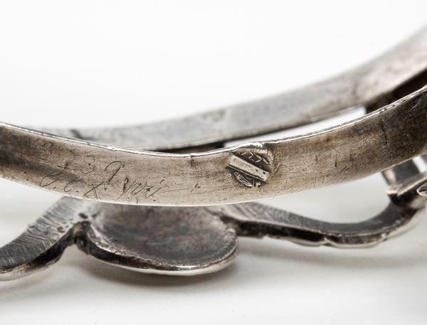 Punzonate con i marchi francesi in uso nel XVIII secolo e nuovamente punzonate con i marchi in uso a Parigi dopo il 1838 per l'argento al primo titolo di 950/1000.