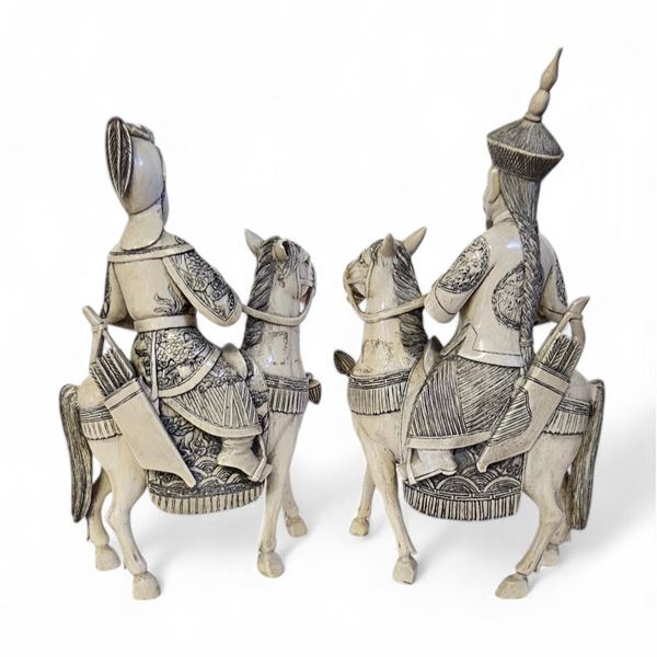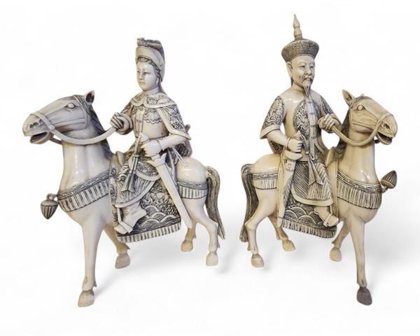 Coppia di sculture cinesi in avorio, Inizio XX secolo