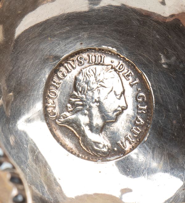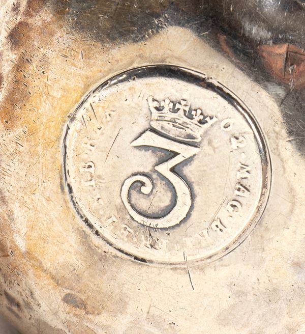 Un mestolo reca un marchio ovale con al centro il numero “3” coronato, circondato dalla scritta in rilievo: “62 MAG BRI ...”, abbreviazione di Magnae Britanniae (Gran Bretagna). Sull'altro lato, compare una figura maschile di profilo, circondata dalla legenda “GEORGIUS III DEI GRATIA”, indicativa del regno di Giorgio III d’Inghilterra (George III, by the Grace of God), sovrano dal 1760 al 1820.