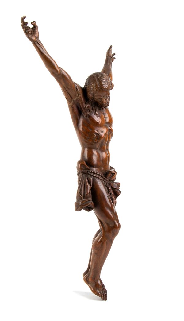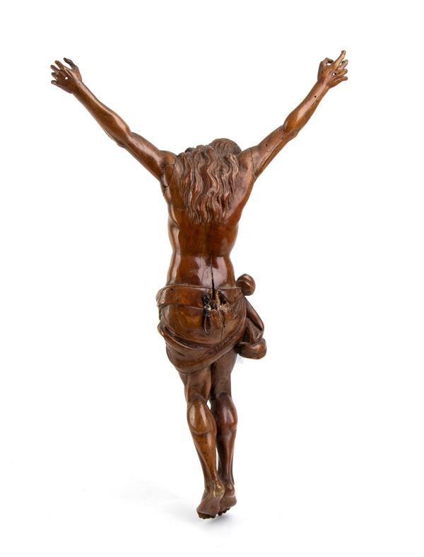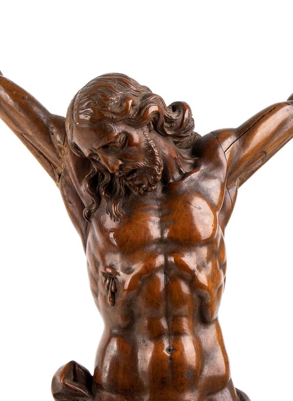 Corpus Christi in legno di bosso, privo di croce. La figura del Salvatore è studiata nei dettagli anatomici: le braccia sono distese, con la muscolatura ben evidenziata; le mani, socchiuse, presentano le stigmate. La testa, priva di corona di spine, è reclinata verso la spalla destra, rivolto verso il basso con occhi chiusi e bocca socchiusa, richiamando l’espressione sofferente dell’Imago Pietatis, una rappresentazione della raffigurazione della crocifissione usata dal XIV secolo. I capelli lunghi cadono sulle spalle e sulla schiena. Il busto, lievemente proteso in avanti, mette in risalto le coste e la muscolatura ben definita e la presenza del taglio sul costato con il sangue, in rilievo, colante. Le gambe flesse e parallele, così come i piedi, su cui sono presenti le stigmate e l'immagine del sangue colante. Le parti intime sono coperte da un perizoma, arricchito da un drappo laterale annodato al centro e tenuto saldo da una doppia corda.