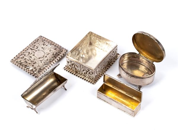 Gruppo di quattro scatole in argento, Inghilterra, XIX - XX secolo