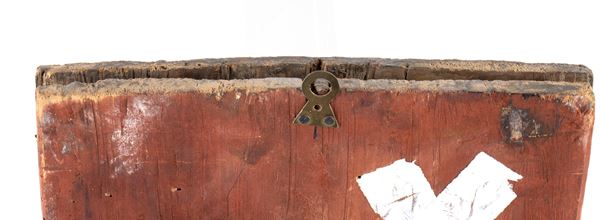 Gesù Cristo è rappresentato da una figura infantile ma con sembianze ed atteggiamenti adulti, mentre benedice con la mano destra e nella mano sinistra tiene un rotolo con la legge divina.