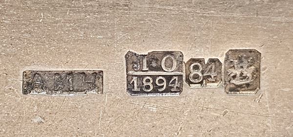 Punzonata con il marchio polifunzionale per l'argento al titolo di 84 zolotniks (875/1000) in uso a Mosca nel 1894, assaggiatore Lev Fridrikhovich, argentiere sconosciuto.