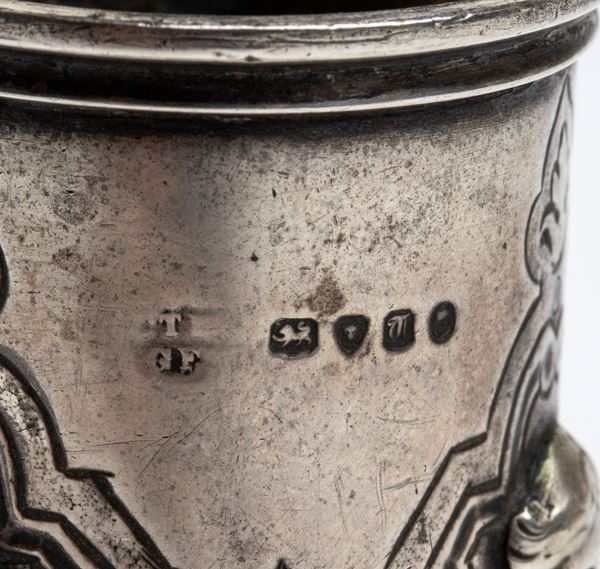 Punzonata con la serie completa di marchi inglesi in uso a Londra, 1854-55, argentiere non identificabile.