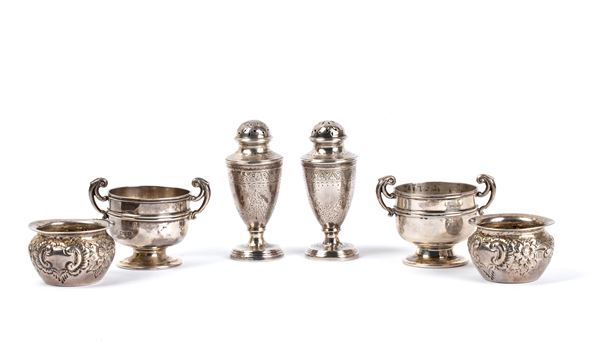 Tre coppie di saliere inglesi in argento, Fine XIX, inizio XX secolo