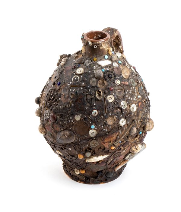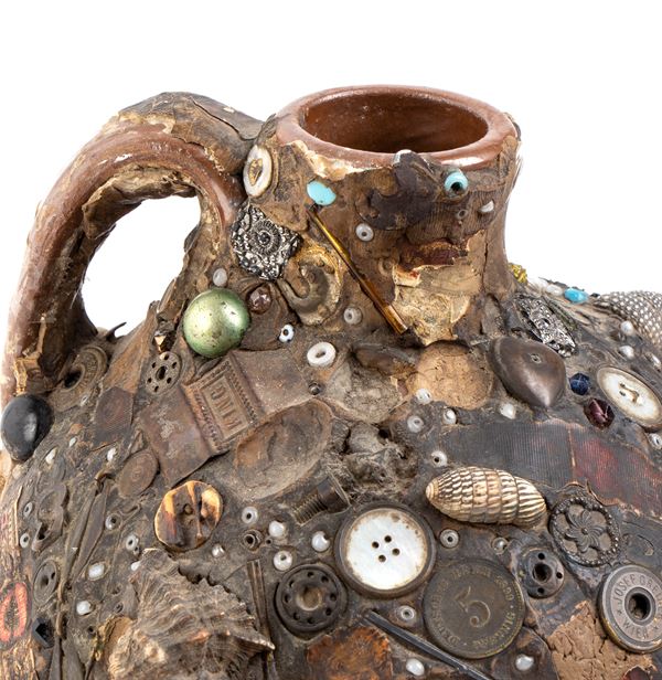 la tecnica del picassiette è una forma d’arte che consiste nel creare mosaici utilizzando pezzi di piatti, ceramiche, vetro o porcellane rotti. Il termine picassiette deriva dal francese "piquer" = prendere e "assiette" = piatto. In senso artistico indica il riutilizzo creativo di cocci e frammenti per creare opere decorative. Il vaso in questione è riconducibile proprio all’ambito dell’arte naïf e outsider e all'espressione dell'arte popolare in Francia.