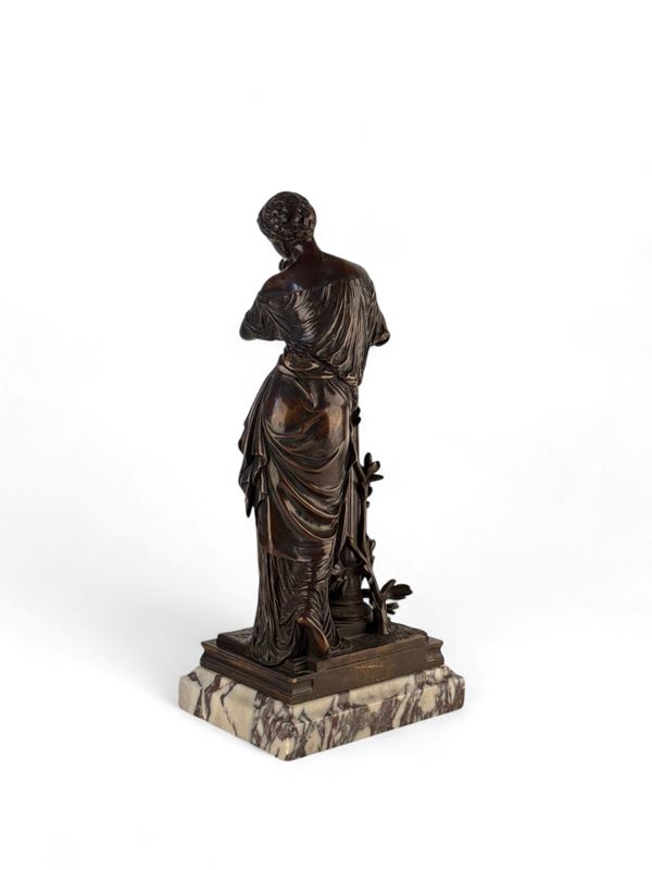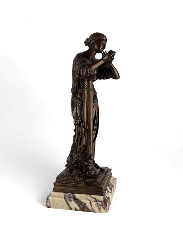 raffigurante Calliope, musa della poesia epica, in bronzo patinato e base in marmo africano.