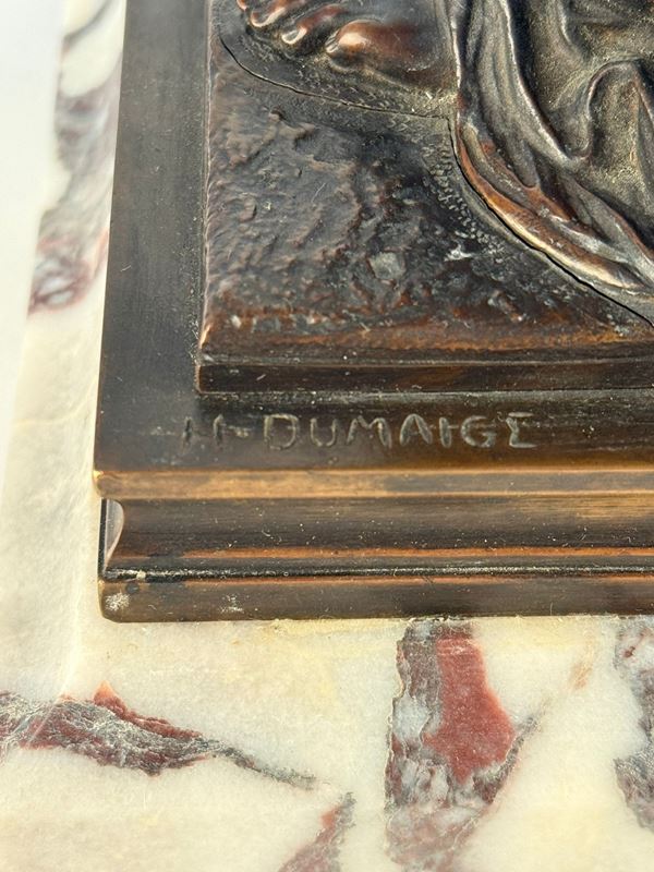Henri Etienne Dumaige(1830-1888) è stato uno scultore francese attivo nella seconda metà del XIX secolo, noto per le sue opere in bronzo di soggetto storico, allegorico e mitologico.Allievo di Dumont e Feuchere, Dumaige espose regolarmente al Salon des Artistes Francais dal 1863 al 1886.