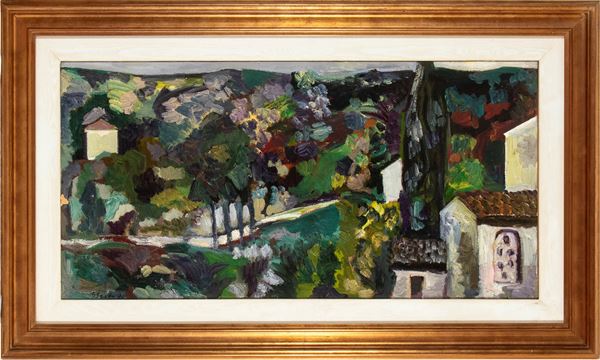 Firmato in basso a sinistra: G. Berto, 71. Firmato, datato e titolato al retro: G. Berto, 71, Paesaggio toscano