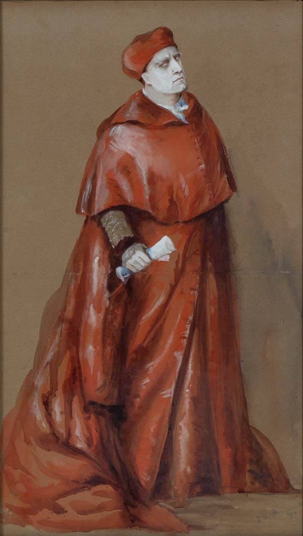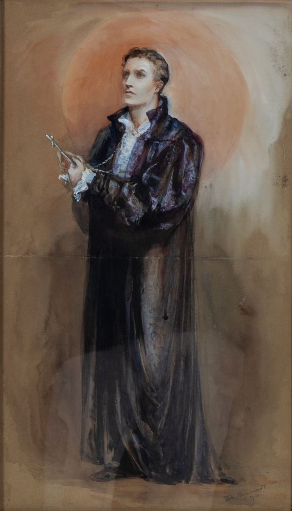 Composto da quattro panelli, ciascuno decorato con un disegno raffigurante un personaggio della tragedia "Enrico VIII" di Shakespeare. Due fogli datati e firmati a matita