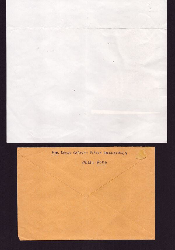 Collage su carta, 187 x 210 mm. Firmato. Entro busta da lettera originale.