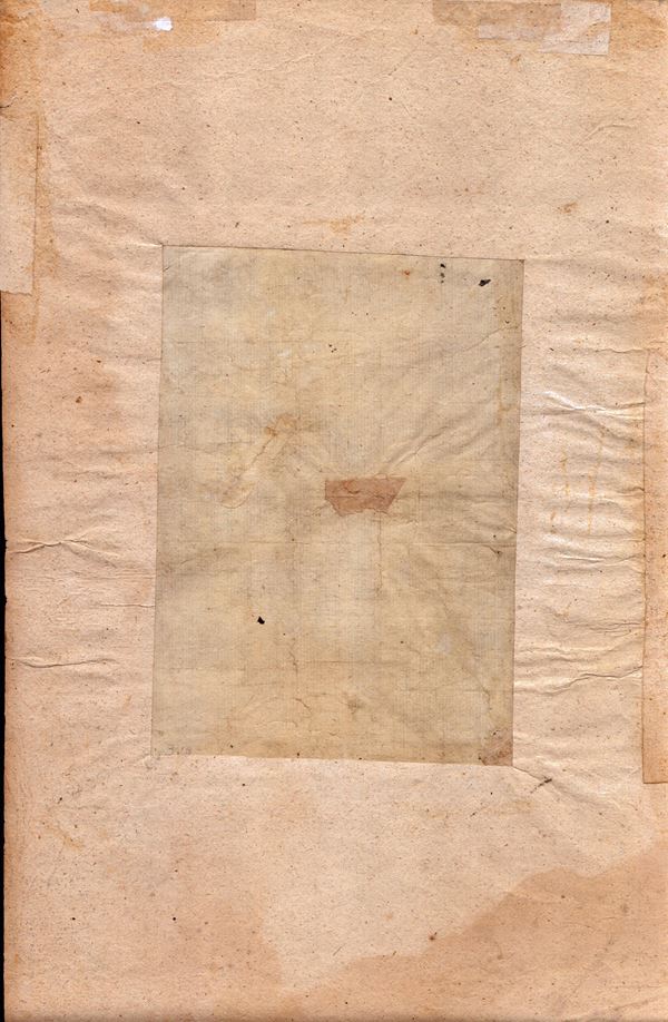 Bella impressione su carta vergata. Esemplare rifilato, con un piccolo strappo al centro e un foro nell'angolo inferiore destro ricomposti, applicato lungo i bordi su un foglio di carta vergata.