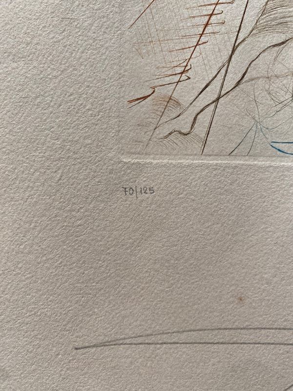 Acquaforte a tre colori, 455 x 320 mm. Tiratura 70/125, firmata a matita.