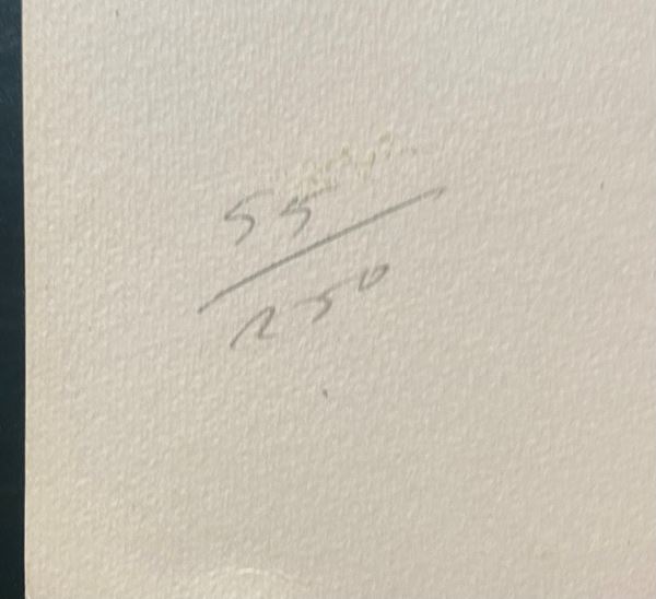 Litografia, 495 x 700 mm. Tiratura 55/250, firmata a matita. Sotto la firma timbro a secco de "International Art Sigillo di Autenticità"