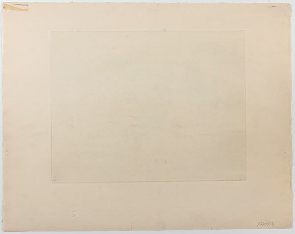 Acquaforte, 380 x 482 mm (foglio). Tiratura 99/110, firmata a matita in basso a destra e un timbro a secco.