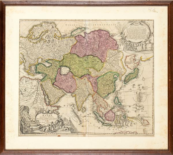 Carta leggermente brunita, con delle sgualciature lungo la piega centrale. Con cornice e vetro (63 x 70 x 1 cm). La stampa non è stata esaminata fuori dalla cornice.