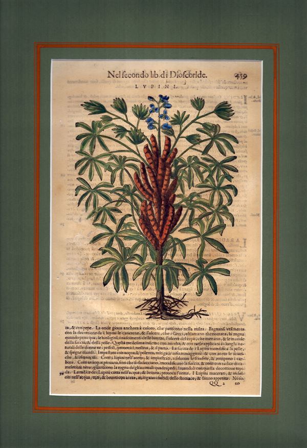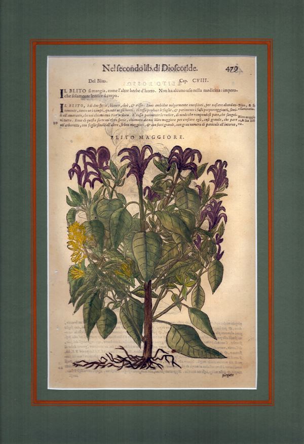 Lotto di due xilografie colorate a mano, con passe-partout, 45 x 34,5 cm