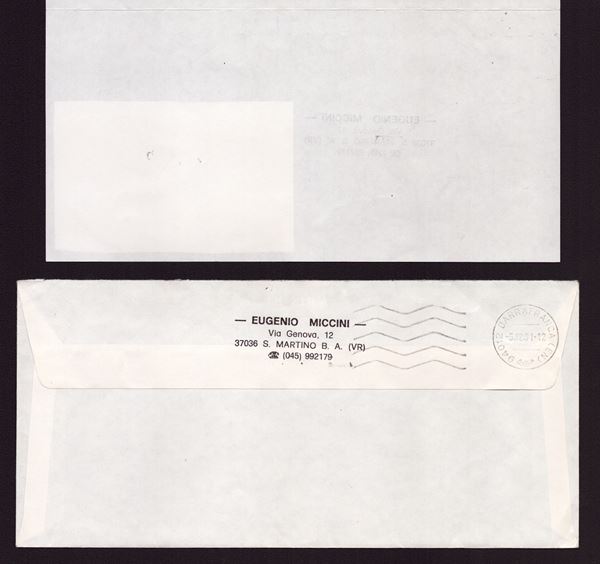 Collage su carta, 110 x 210 mm. Firmata. Entro busta da lettera originale.