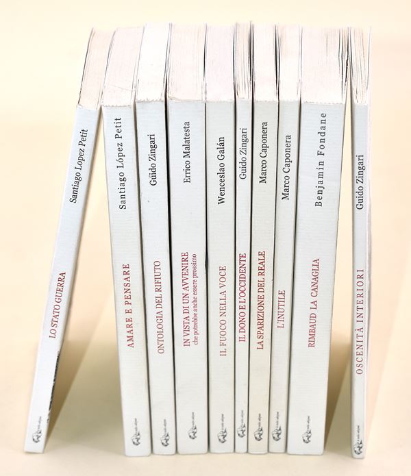 G. Zingari, Il dono e l'Occidente (2005, n.1). E. Malatesta, In vista di un avvenire (2005, n. 2). S. Lopez Petit, Lo Stato Guerra (2005, n.3). M. Caponera, La sparizione del reale (2005, n.4). G. Zingari, Ontologia del rifiuto (n.5). B. Fondane, Rimbaud la canaglia (2007, n.6). S. Lopez Petit, Amare e pensare (2007, n.7). W. Galan, Il fuoco nella voce (2008, n.8). M. Caponera, L'inutile (2009, n. 9). G. Guido Zingari, Oscenità interiori (2010, n.10). Brossure editoriali.