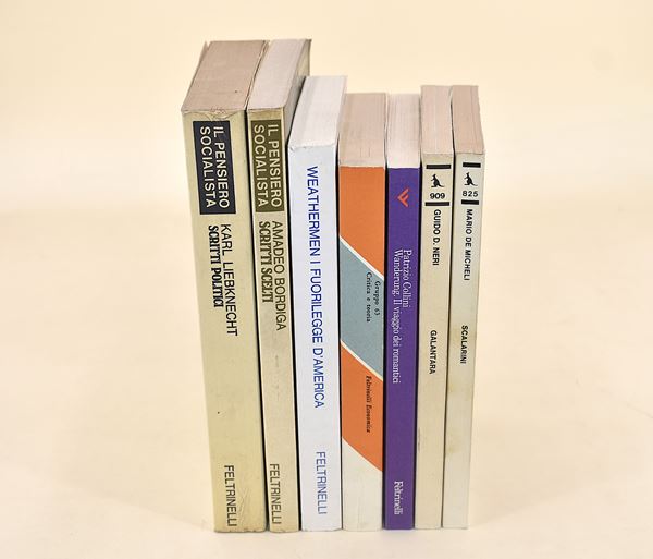 Gruppo 63 critica e teoria (Prima edizione, 1976). Galantara, Gabriele Il Morso dell’asino (1965). Weathermen, I Fuorilegge d’America (a cura di Harold Jacobs Feltrinelli, 1969). Mario De Micheli, Scalarini. Vita e disegni del grande caricaturista politico (1978). Patrizio Collini, Wanderung. Il viaggio dei romantici (1996). Karl Liebknecht, Scritti politici. Amadeo Bordiga, Scritti scelti (Prima edizione, 1975).