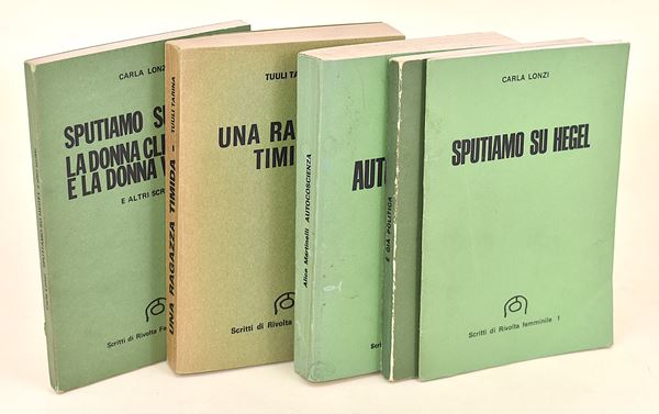 Autori vari, E' già politica (1977). Tuuli Tarina, Una ragazza timida (1973). Alice Martinelli, Autocoscienza (1975). Carla Lonzi, Sputiamo su Hegel (s.d.). Carla Lonzi, Sputiamo su Hegel, la donna clitoridea e la donna vaginale e altri scritti (1974).