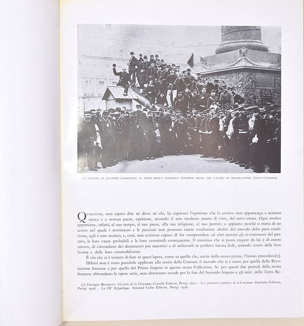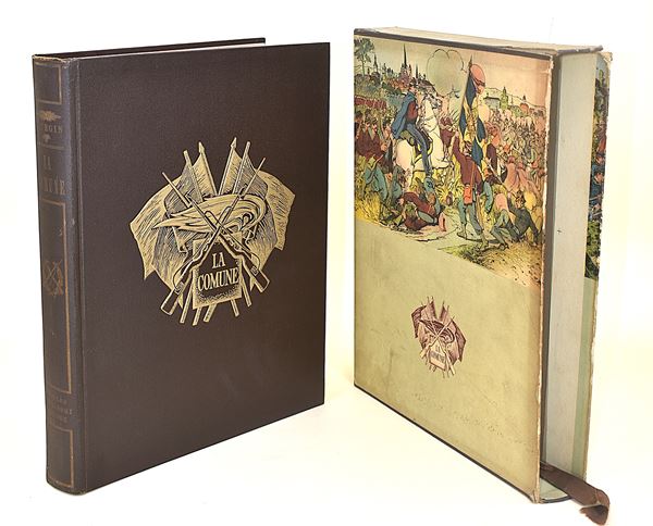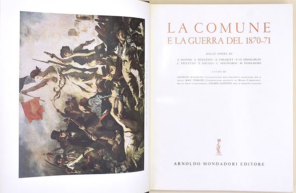 LA COMUNE E LA GUERRA DEL 1870-1871. Prima edizione Mondadori 1956. 1 volume. Copertina rigida editoriale in piena similpelle con altorilievo in oro al piatto. Cofanetto cartonato rigido editoriale. Arnoldo Mondadori Editore, prima edizione 1956. Stampato su carta patinata con una tavola a colori all'antiporta, riccamente illustrato con numerose figure nel testo e tavole in nero.