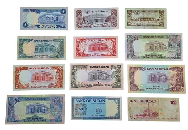 SUDAN. Lotto di 12 banconote. Date, tagli e conservazioni varie.