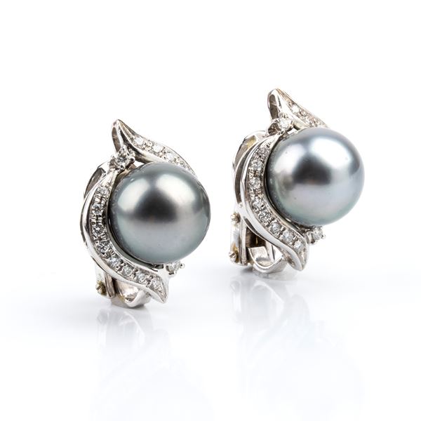 Paio di orecchini in oro, diamanti e perle Tahiti