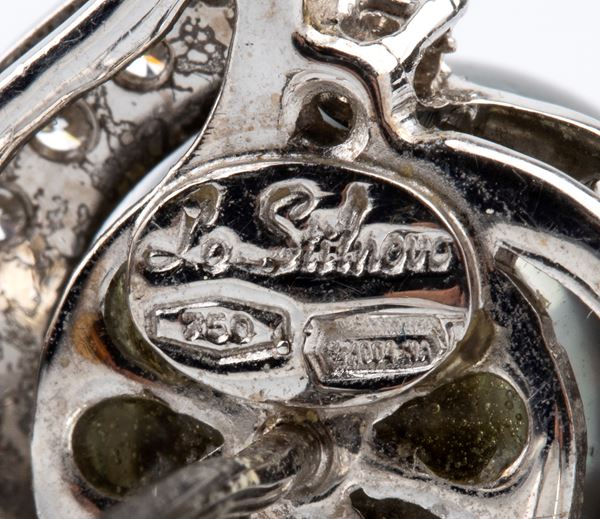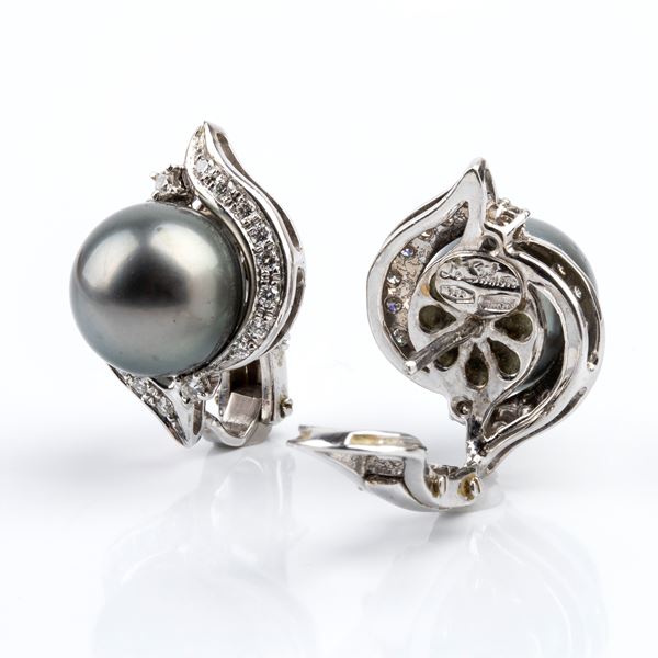 in oro bianco 18k, ciascuno con perla Tahiti contornata da nastri in diamanti. Firmati LO STILNOVO.