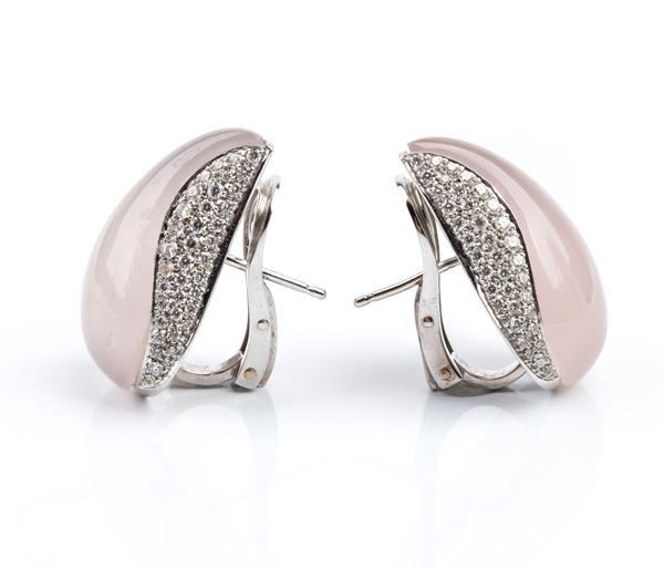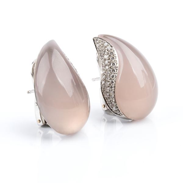 ciascuno a forma di goccia, con cabochon di calcedonio e dettagli in diamanti.