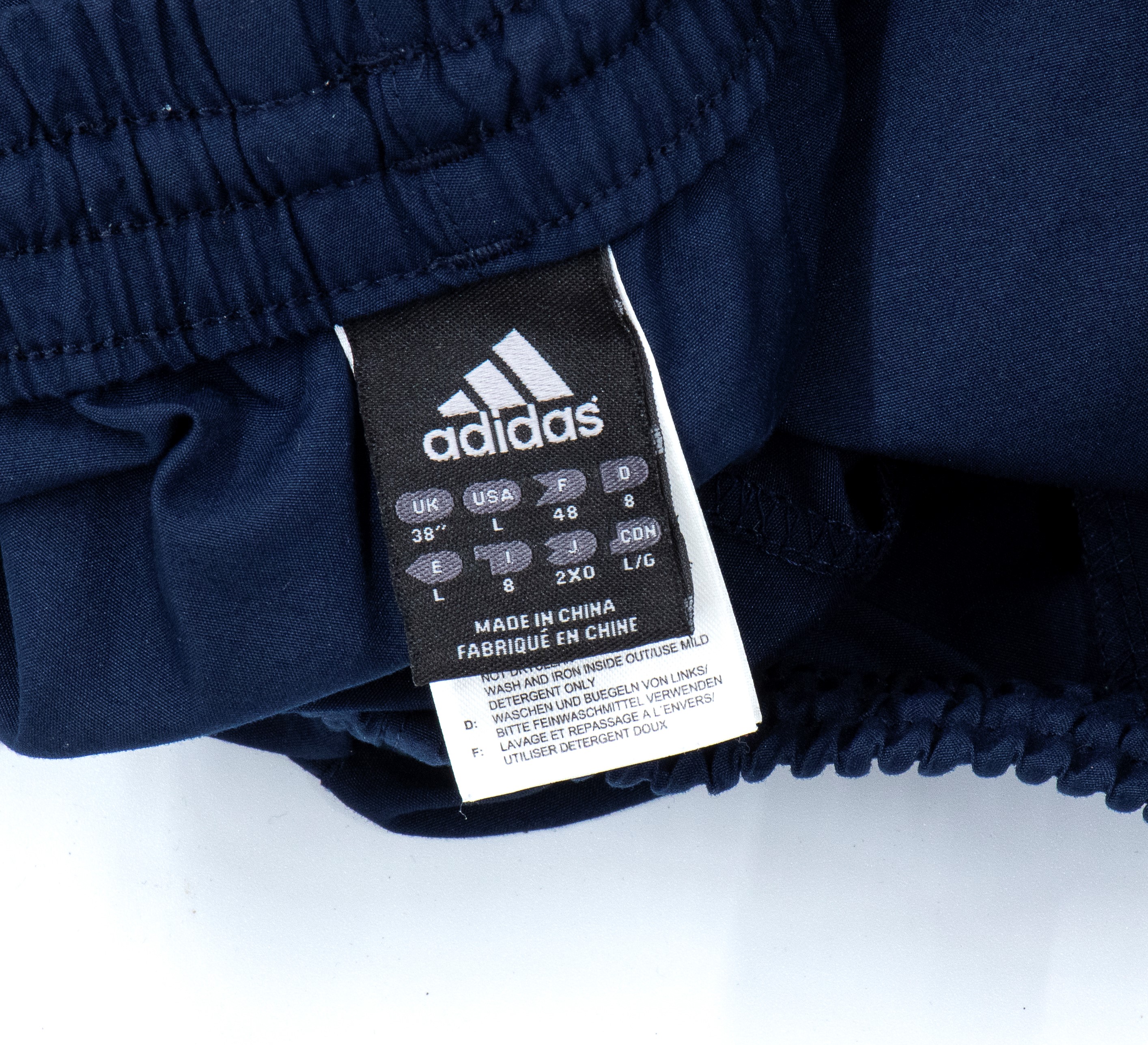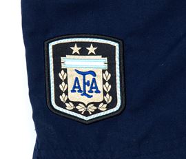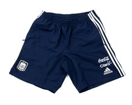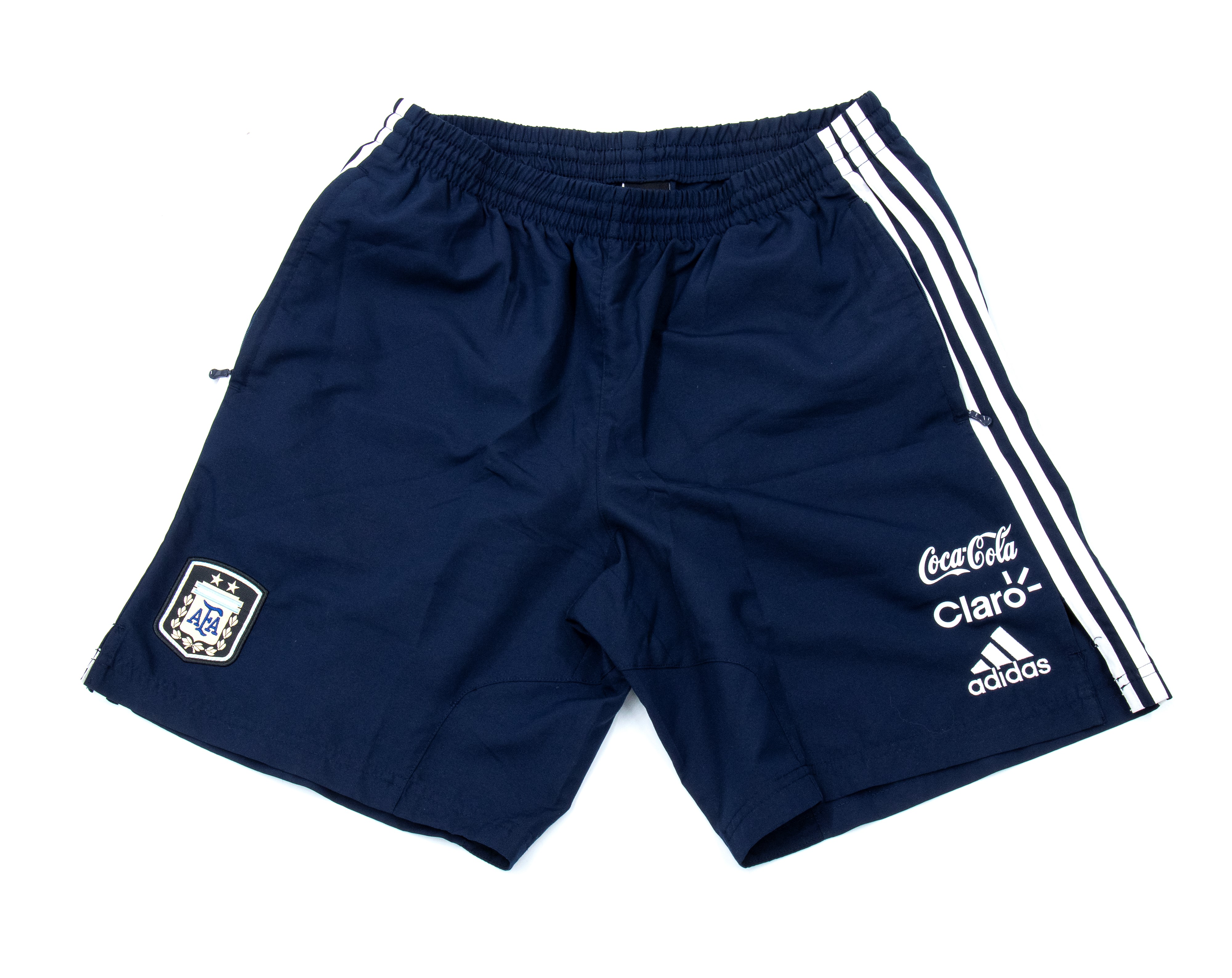 Pantaloncini da allenamento della squadra argentina, blu con bordi bianchi. Pantaloncini ADIDAS, etichetta interna con produttore e taglia.