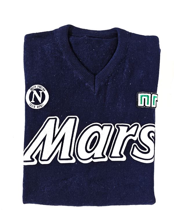 Maglia di calcio da allenamento del Napoli stagione 1989-90, indossata da Diego Armando Maradona allo stadio Olimpico di Roma, in occasione del prepartita per Roma-Napoli del 8 Ottobre 1989