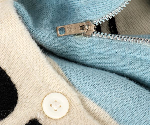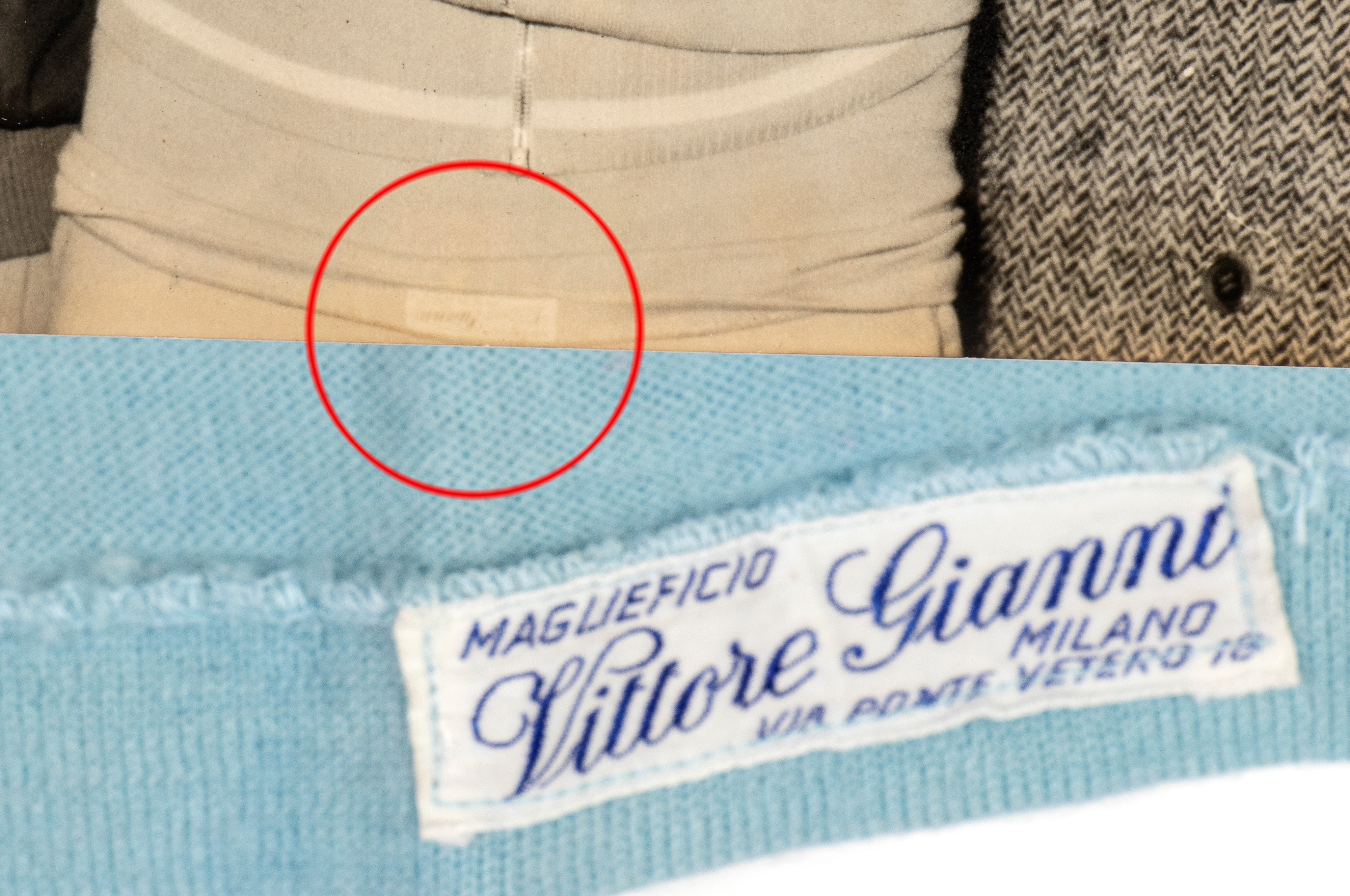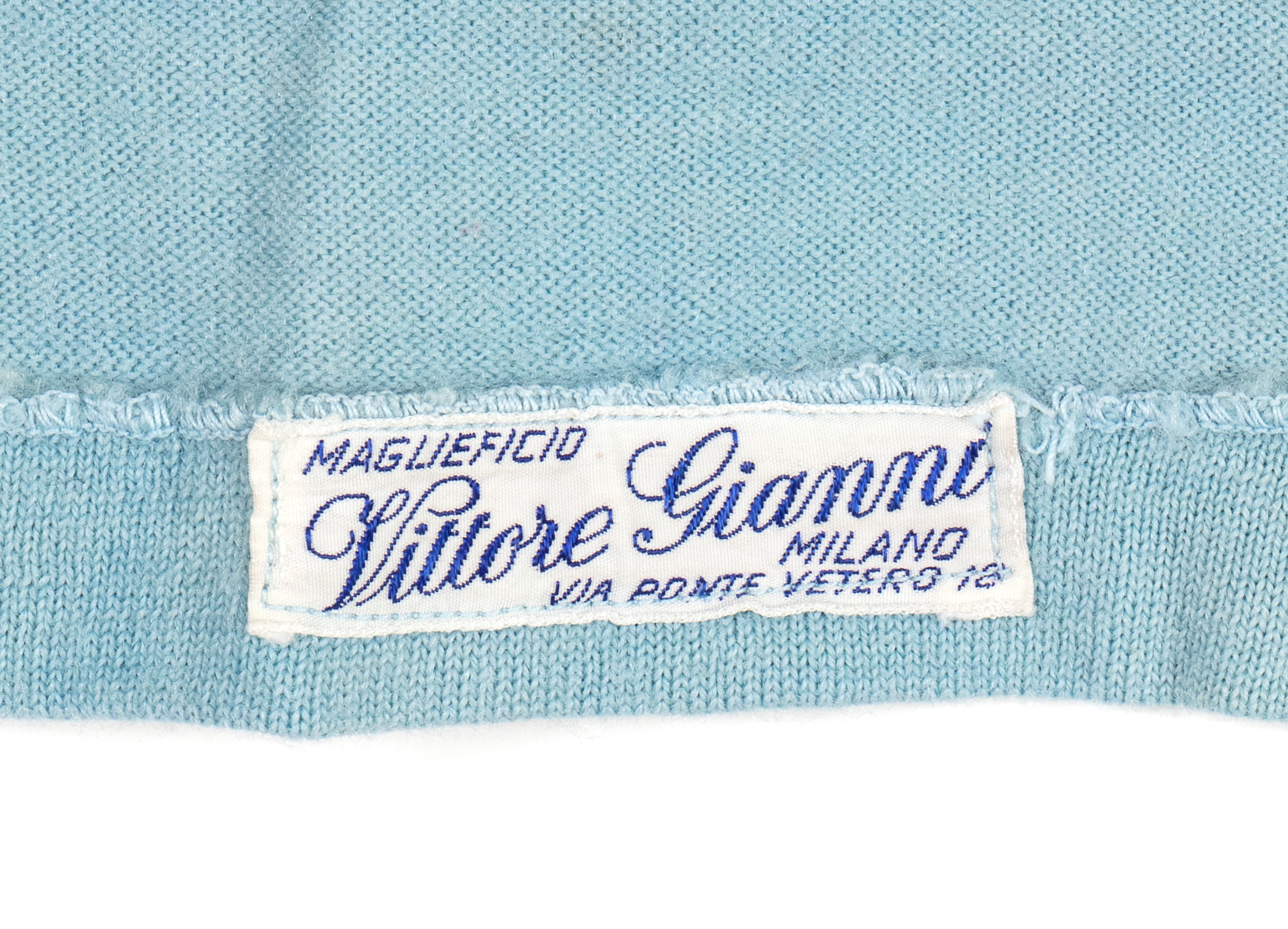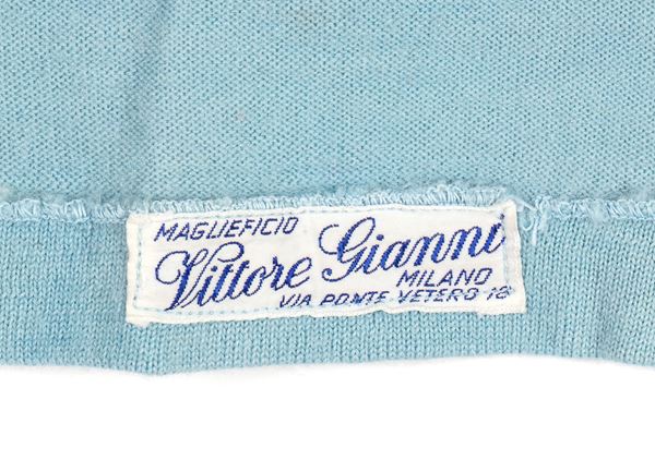 Targhetta interna al collo taglia II. Targhetta del produttore MAGLIEFICIO VITTORE GIANNI Milano.