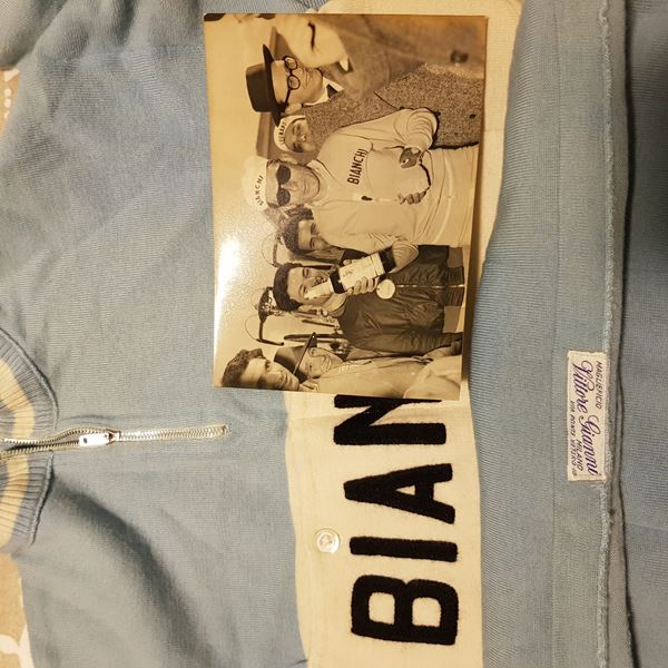 Insieme alla maglia viene fornita una fotografia che mostra Coppi con indosso la stessa maglia, sotto una seconda felpa.