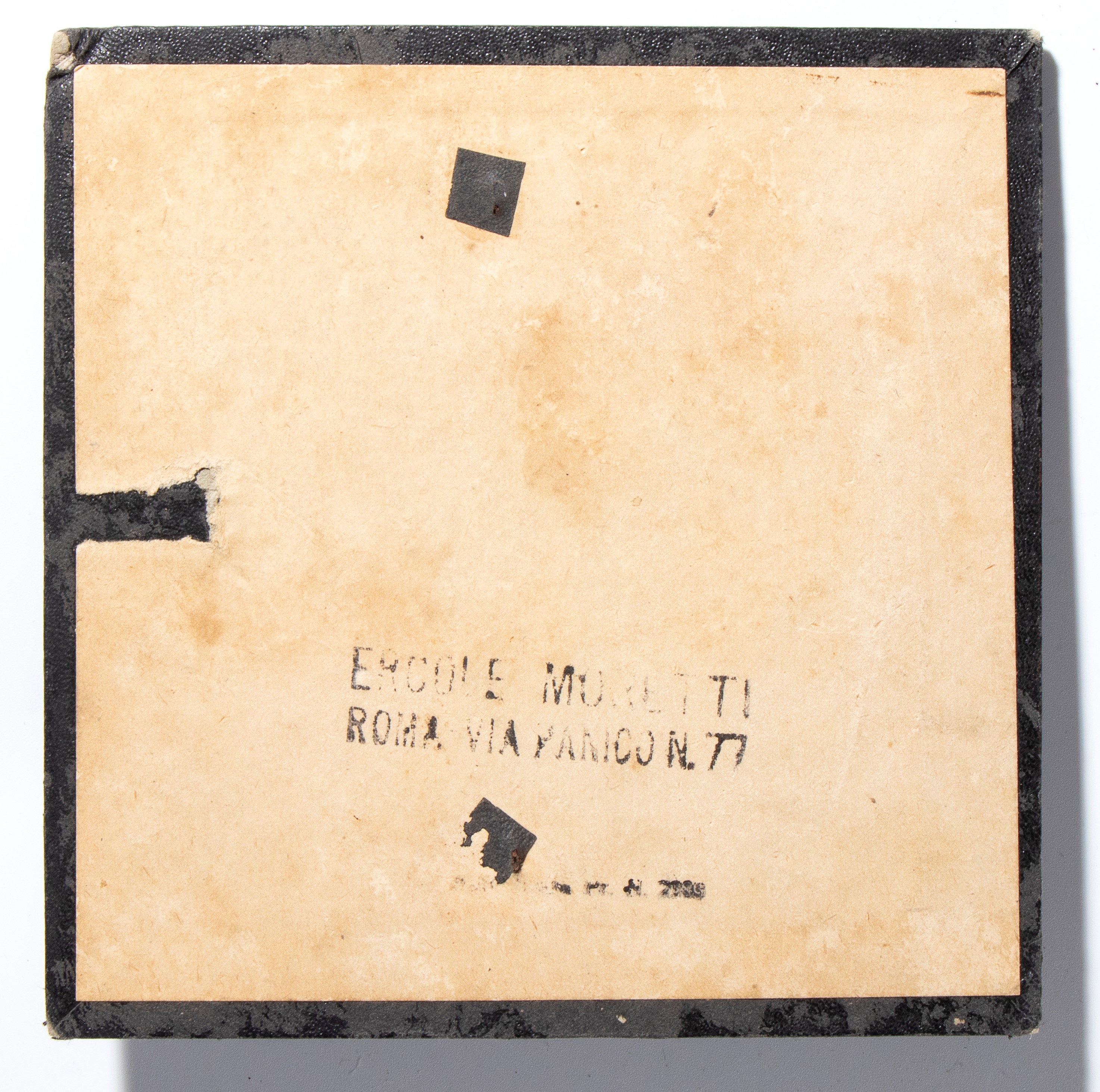 Placca commemorativa della CROCIERA AEREA DEL DECENNALE, con effige del Duce al centro, e motto AGLI ORDINI DEL DUCE SI RAGGIUNGONO TUTTE LE METE pronunciato da Italo Balbo, il comandante della crociera che vide una flotta di Savoia Marchetti SM-55x trasvolare da Orbetello a New York, Chicago e fare ritorno a Roma, nel 1933. Placchetta realizzata in lamierino di ottone brunito e montata su basetta di cartone rigido, misura circa cm.15x15, in perfette condizioni. Al retro timbro della ditta fabbricante ERCOLE MORETTI - ROMA - VIA PANICO 77 con eventuale numero di codice od articolo sbiaditi dal tempo.