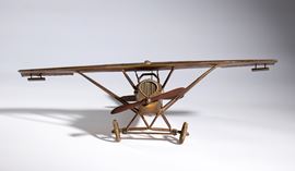 Modello originale dell'epoca realizzato in lamiera scatolata (lamierino di ottone) , usato per propaganda militare e rappresentanza della ditta ANSALDO costruttrice. Il modello ha una apertura alare di circa cm.52 , ed una lunghezza di cm.35. La cabina di pilotaggio è provvista di alloggio per il pilota, dotata dei comandi meccanici (leve) per controllare l'apertura e chiusura dei flap sulle ali, e per il direzionamento del timone di coda. Elica bipala in legno girevole. Pneumatici in gomma dura, ruote a raggi, modello originale del 1925 circa, bellissima realistica riproduzione in scala. In condizioni eccellenti, originale in ogni sua parte, non necessita di alcun restauro