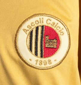 Sul retro: nome PAOLONI e numero 12 in sublimatico , al colletto emblema cittadino di Ascoli in ricamo