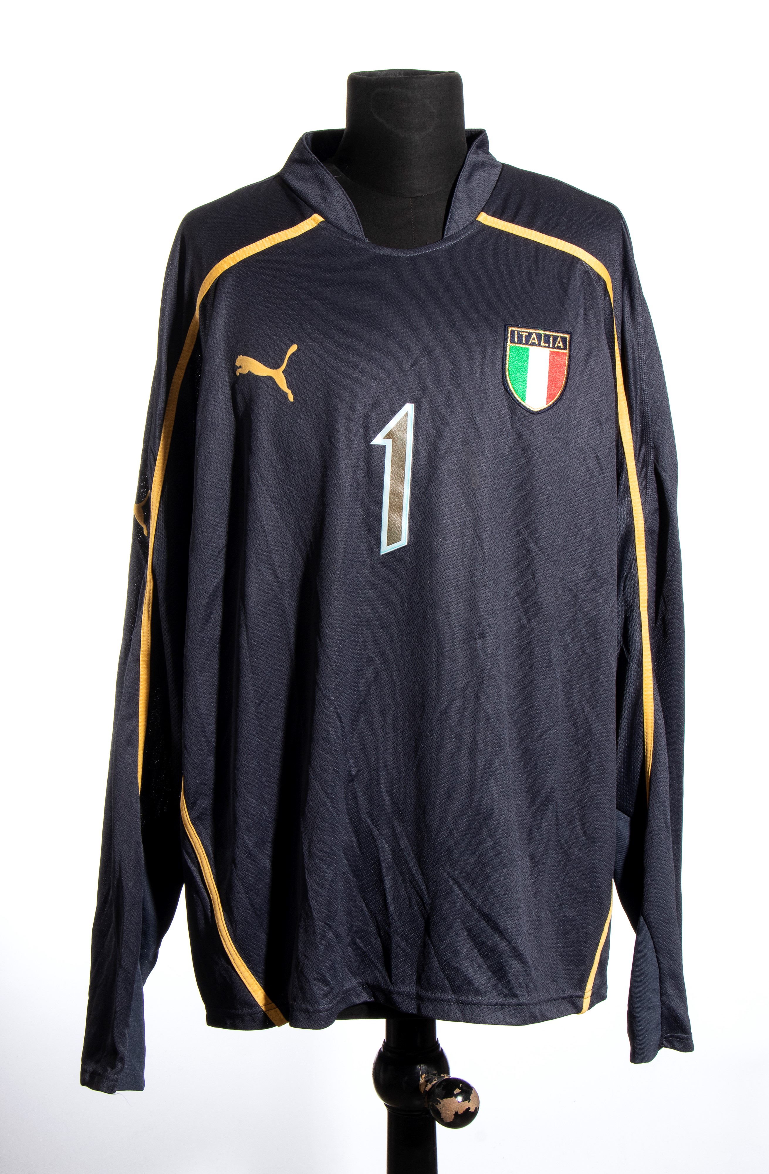 Maglia usata dal portiere Marco Paoloni il 26 Luglio 2003 nella finale del Campionato Europeo UNDER 19 edizione del 2003. La finale fu giocata tra Italia e Portogallo con il risultato finale di 2-0 per gli "azzurrini" che vinsero il primo titolo europeo