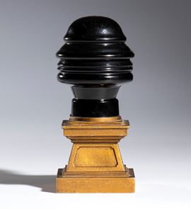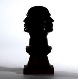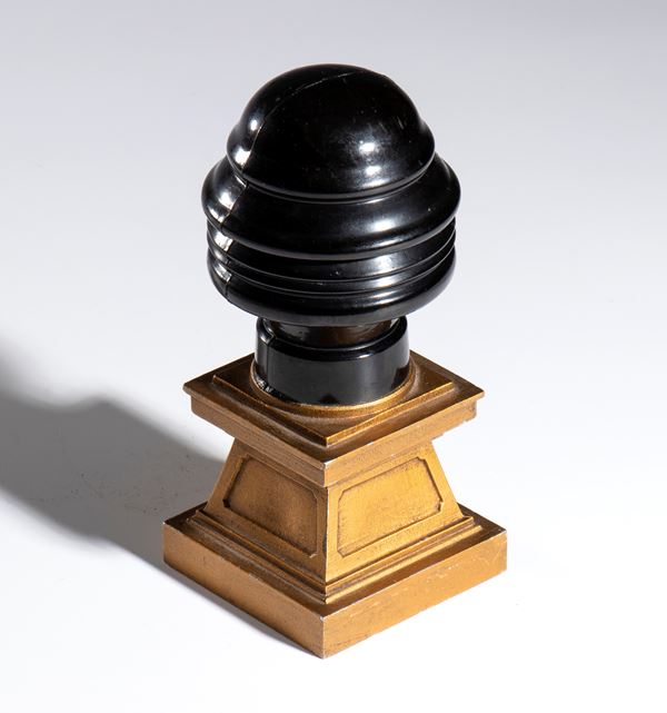 Il profilo di colorazione nero lucido, è poggiante su un piedistallo a modo di ara romana di base quadrata dal colore simil oro.