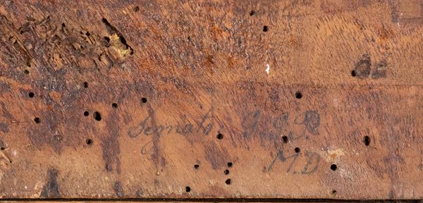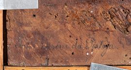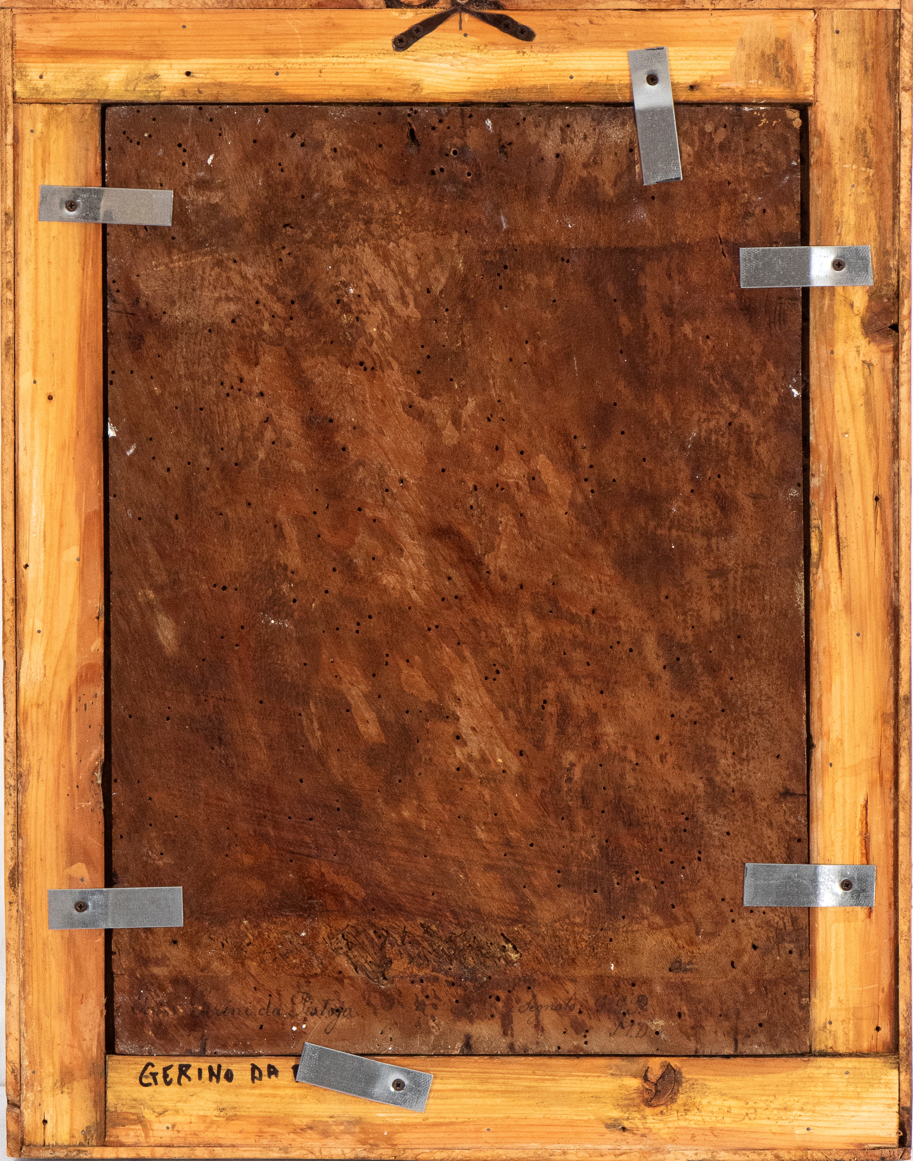 Al retro la tavola reca due vecchie iscrizioni a pennello. In basso a destra: "GERINO GERINI DA PISTOIA"; in basso al centro: "SEGNATO GGP / MD".