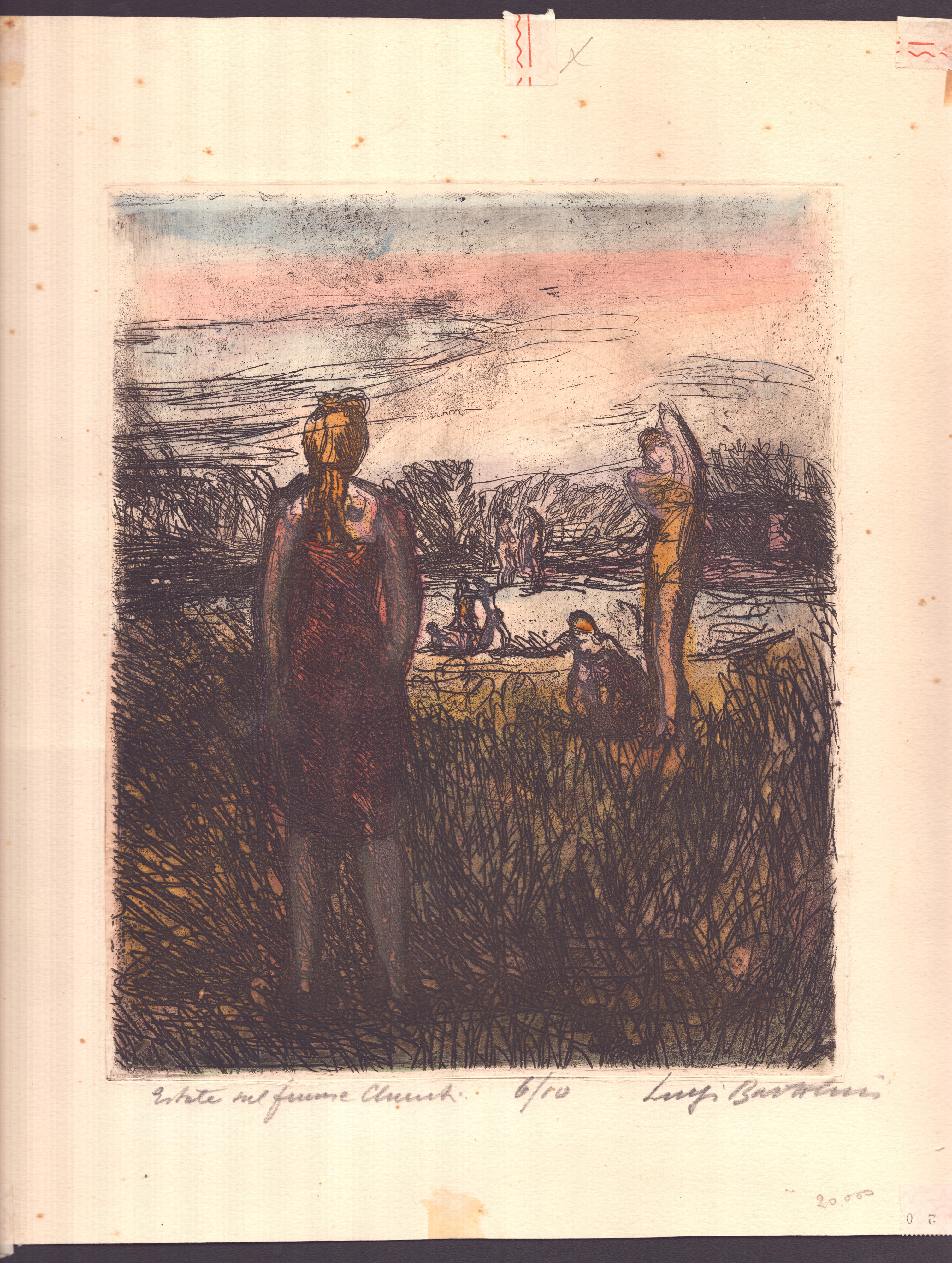 Acquaforte su chine-collé, 280 x 232 mm (lastra), 382 x 320 mm (foglio). Titolo, tiratura e firma a matita in basso.