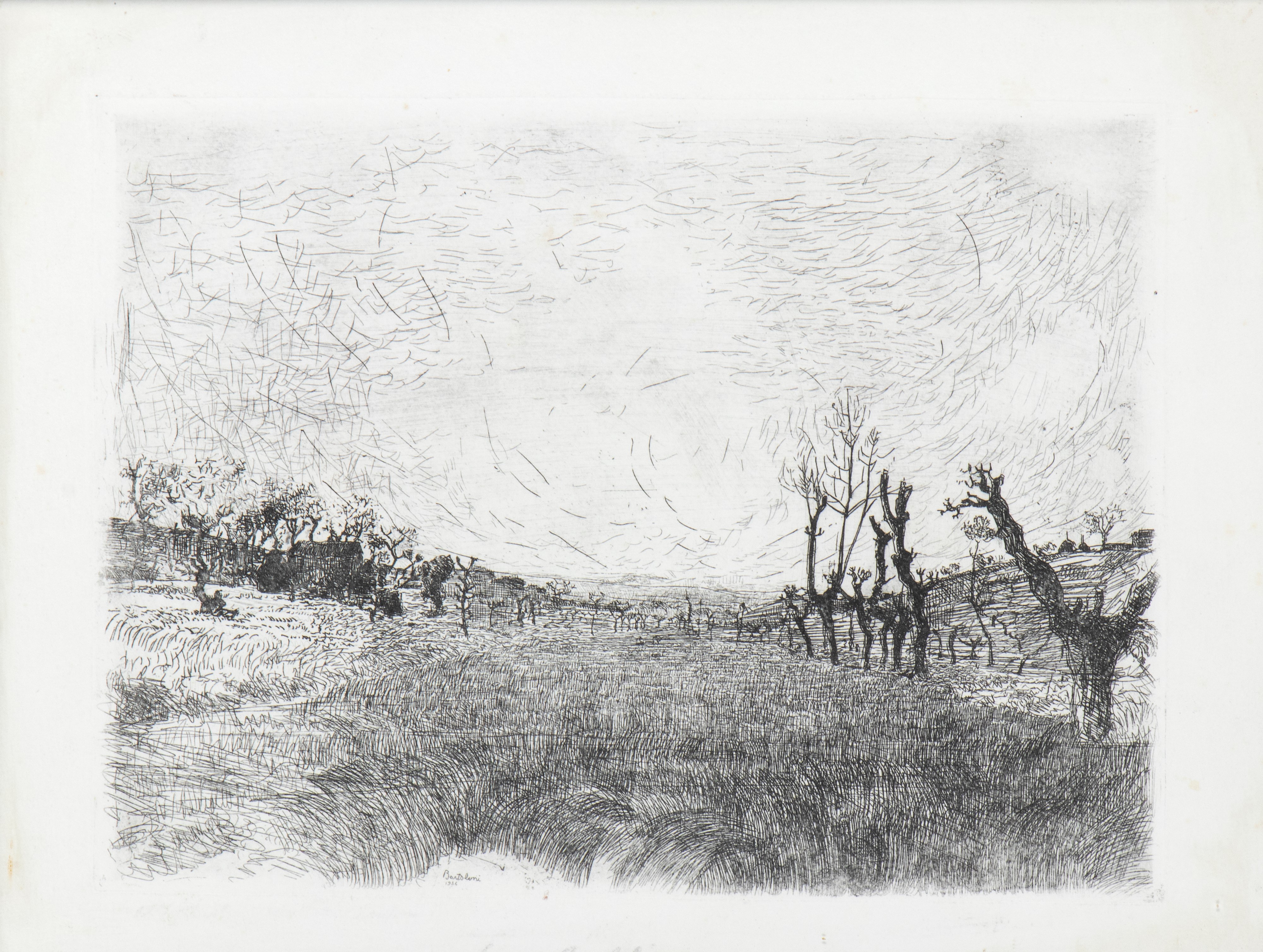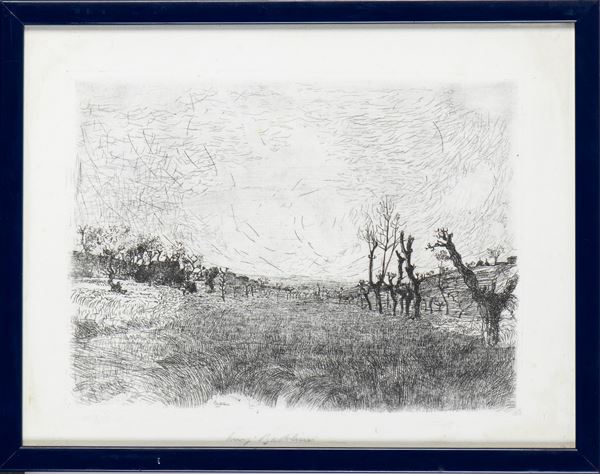Acquaforte, 198 x 266 mm (lastra), 245 x 322 mm (foglio). Firma e data incise in lastra. Firmato a matita in basso al centro. Petrucci 220 (esemplare unico, misure leggermente diverse), Bersanti 235 (misure esatte, esemplare unico).