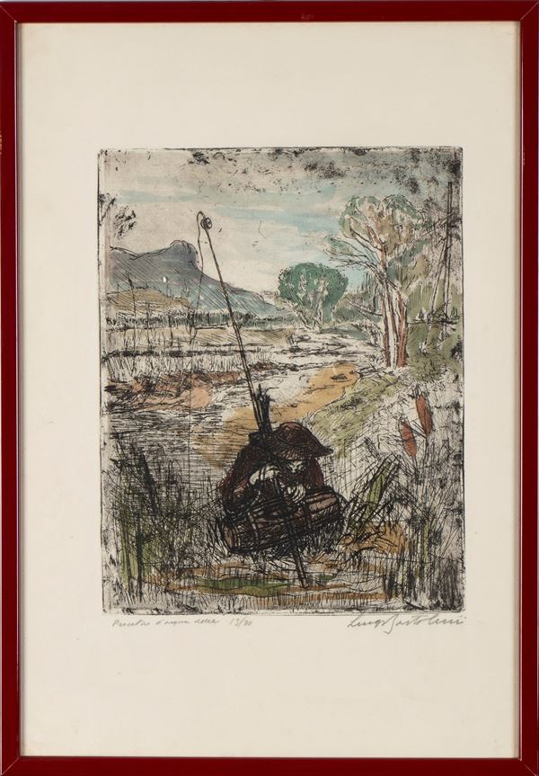 Acquaforte, 315 x 245 mm (lastra), 500 x 340 mm (foglio). Titolo, tiratura 13/30 e firma a matita in basso. Petrucci 593, Bersanti 680.