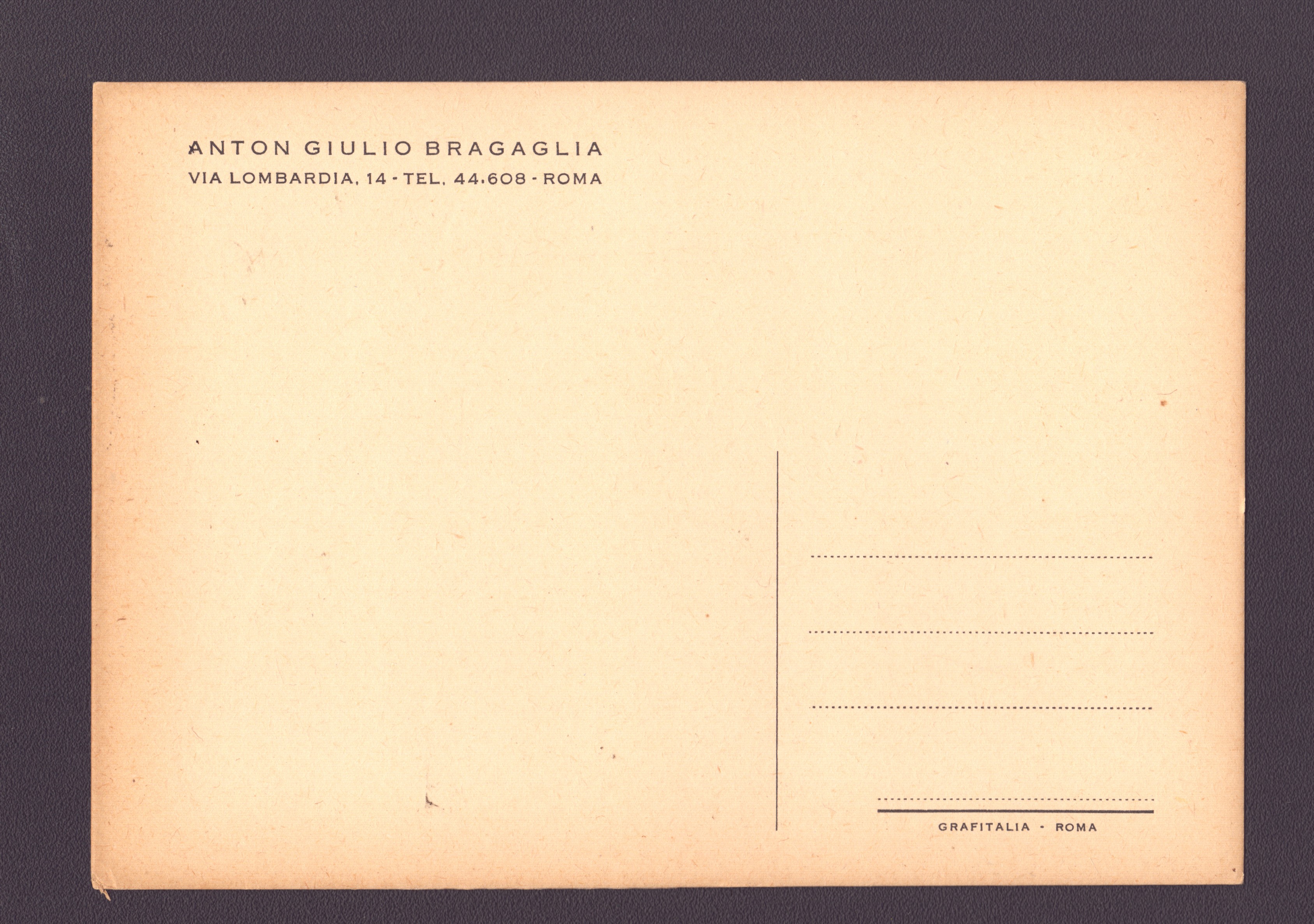 Cartolina postale futurista. Litografia, 150 x 105 mm.