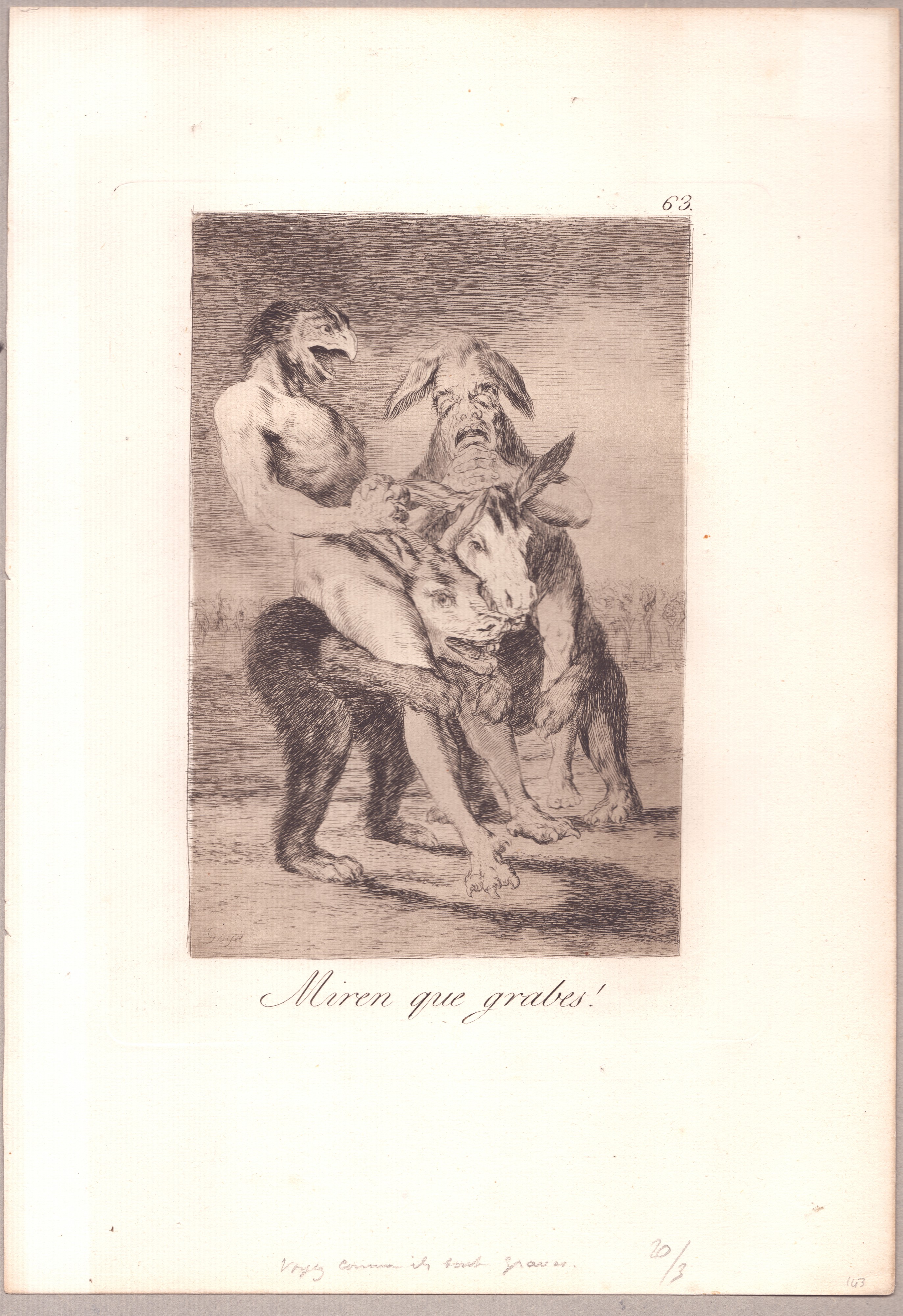 Tavola n. 63 dalla serie Los Caprichos. Acquaforte e acquatinta, 312 x 214 mm (foglio). II edizione del XII (1855).
