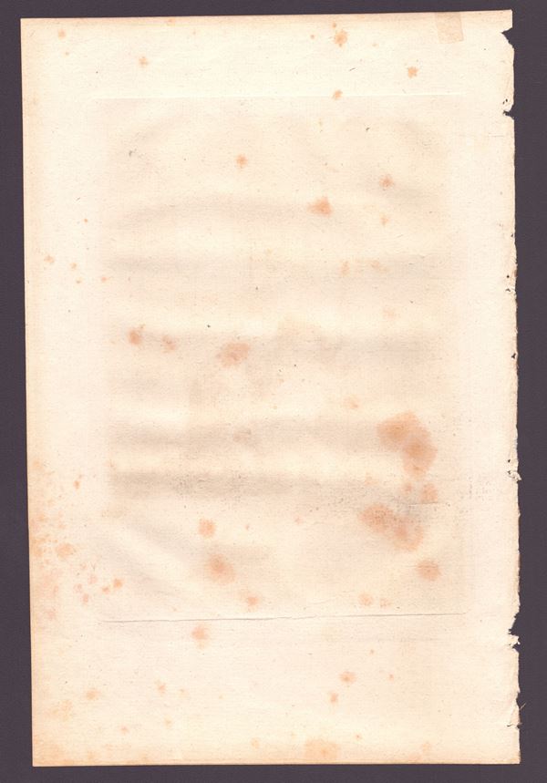 Molto bella impressione ad inchiostro color seppia su carta vergata. Foglio in stato molto buono salvo fioriture sparse. Grandi margini preservati. Con passe-partout moderno.