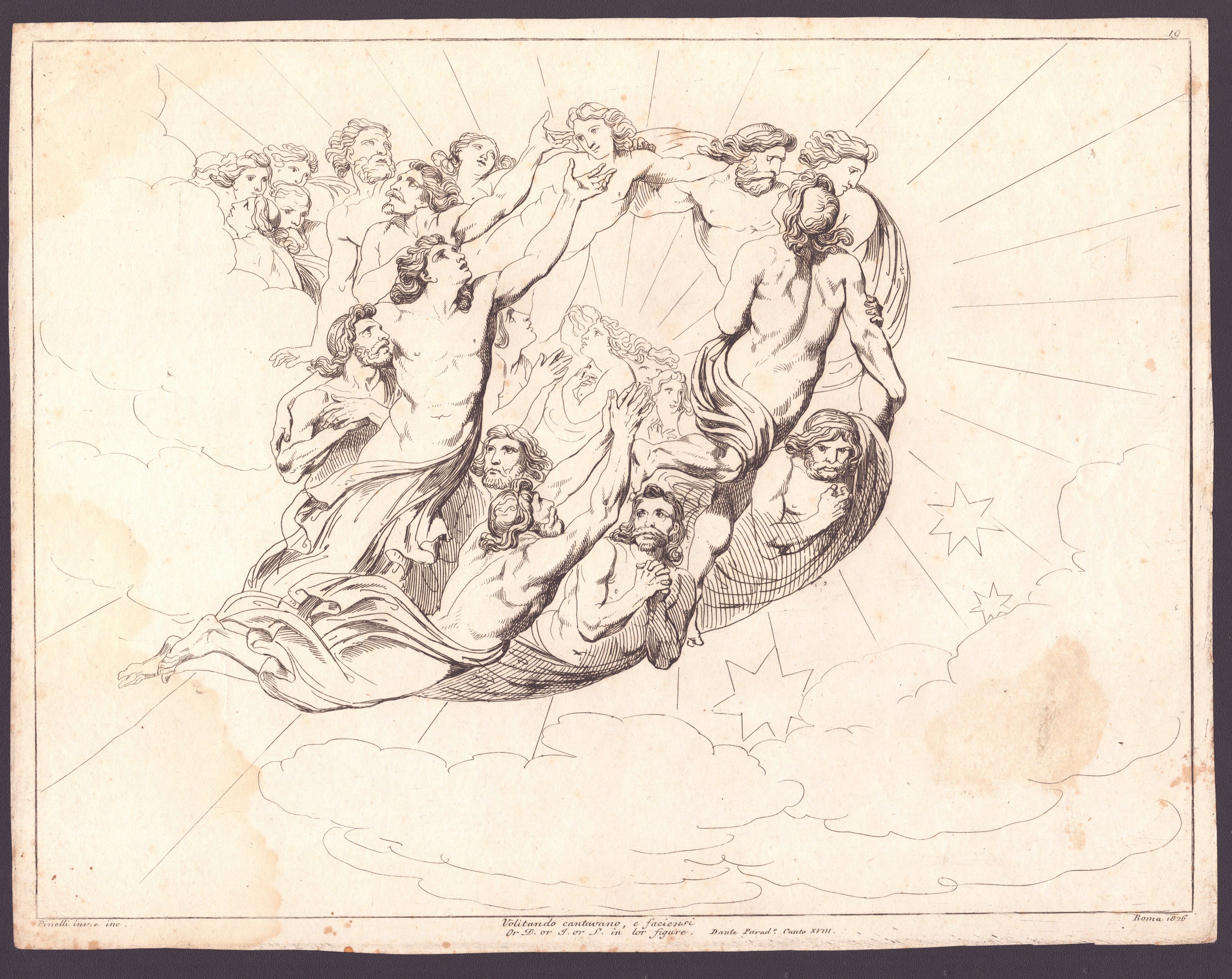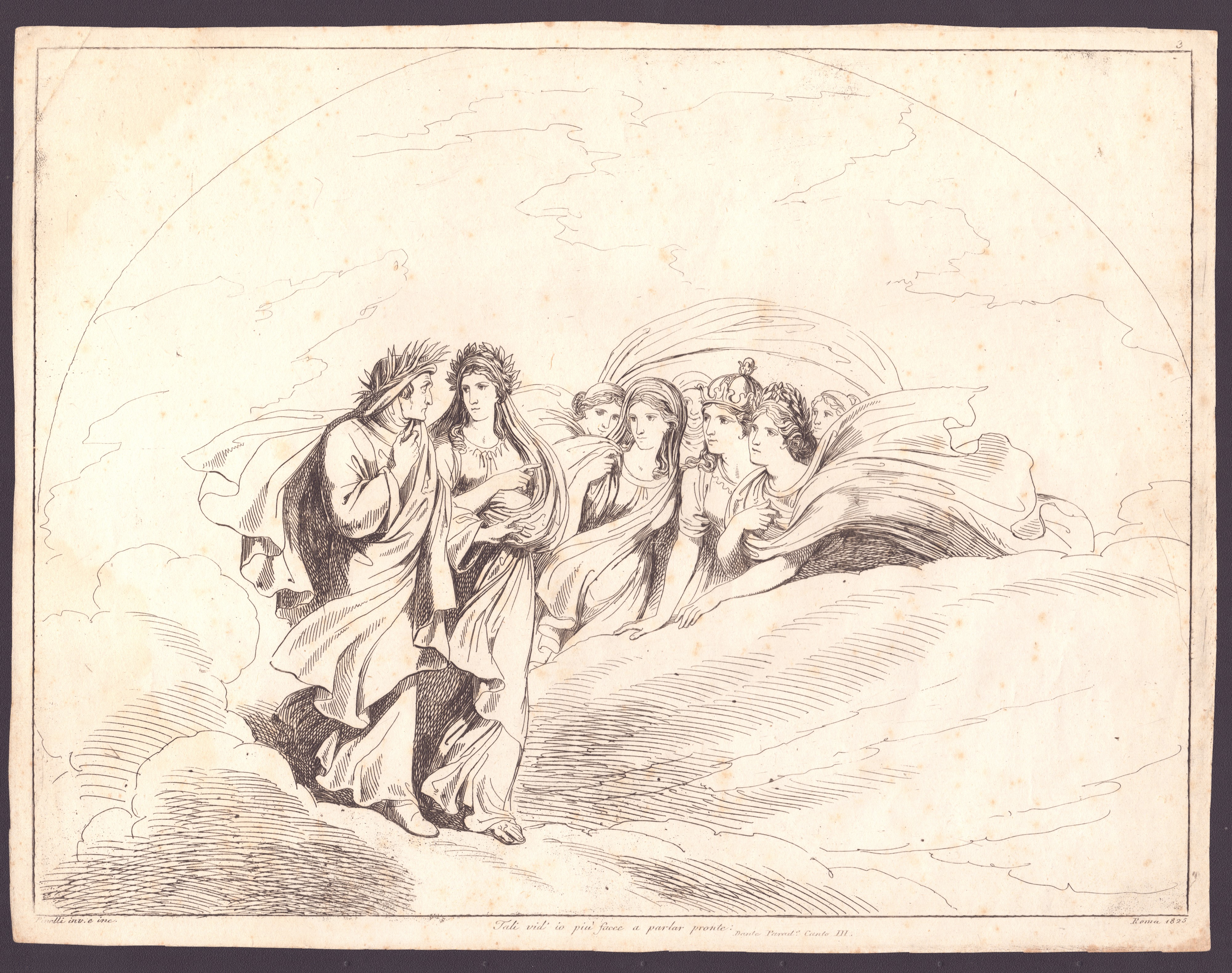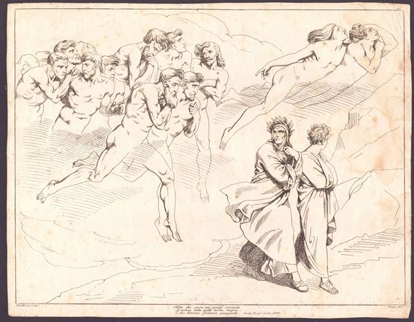 Lotto di tre incisioni tratte dalle raccolta "Divina Commedia". Acquaforte, 272 x 352 kmq ca. (cad. foglio).