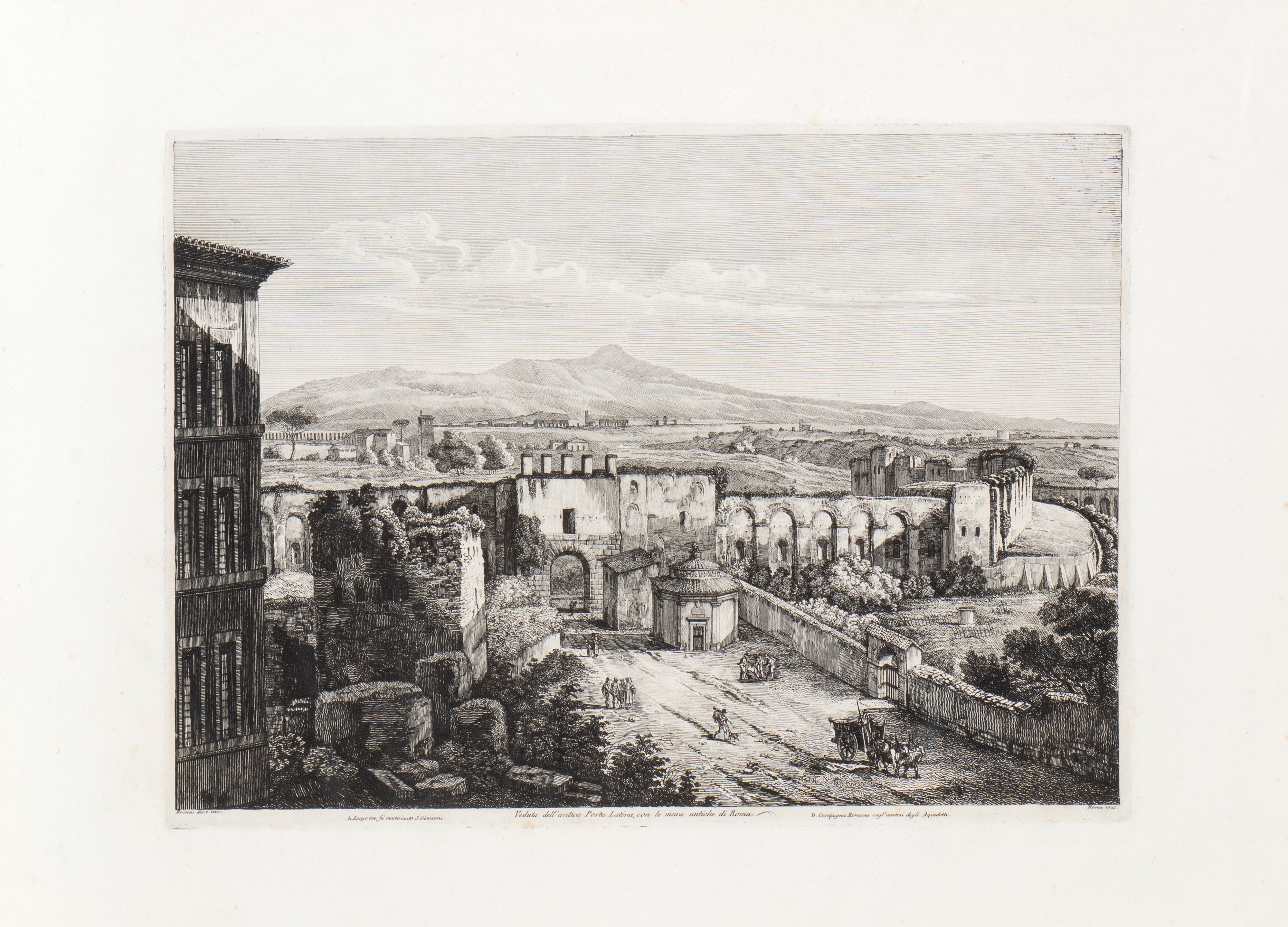 Veduta dell'antica Porta Latina, con le mura antiche di Roma, 1823